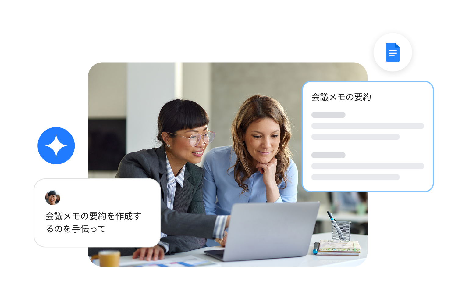 Gmail、カレンダー、ドライブ、ドキュメントなどの使い慣れたツールでビジネスを円滑に進められます。Gemini を活用して、生成 AI のパワーで生産性をさらに向上させましょう。