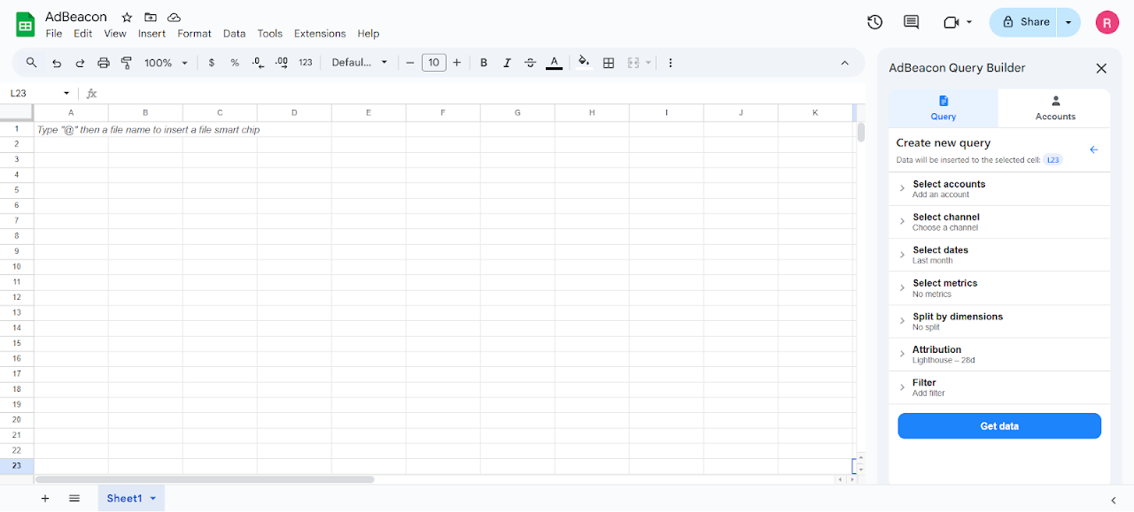 Connect to your AdBeacon and marketing channel data —all piped into Sheets™.