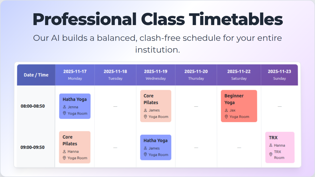 • Educators creating class timetables for schools, colleges, and tutoring centers
