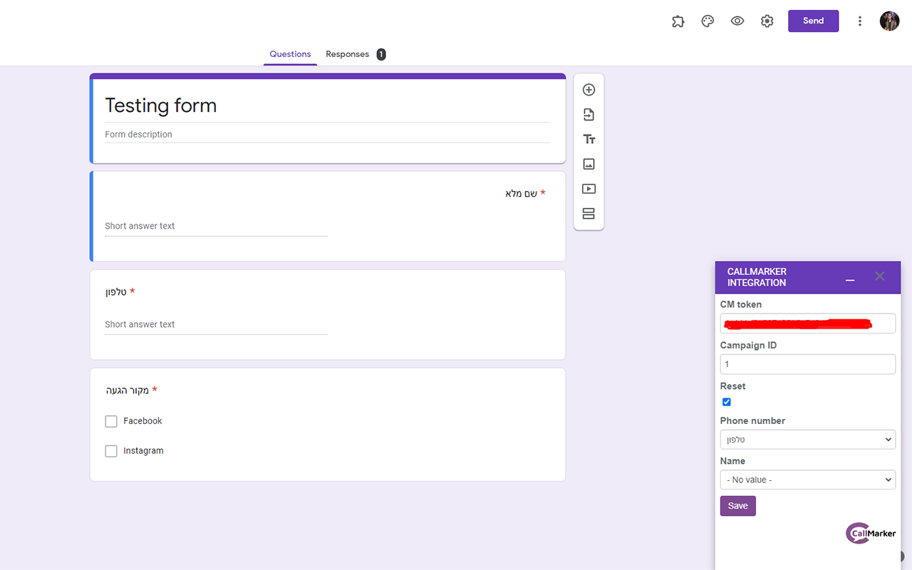 You may configure the connection to CallMarker account and map Google Form fields to CallMarker lead fields.