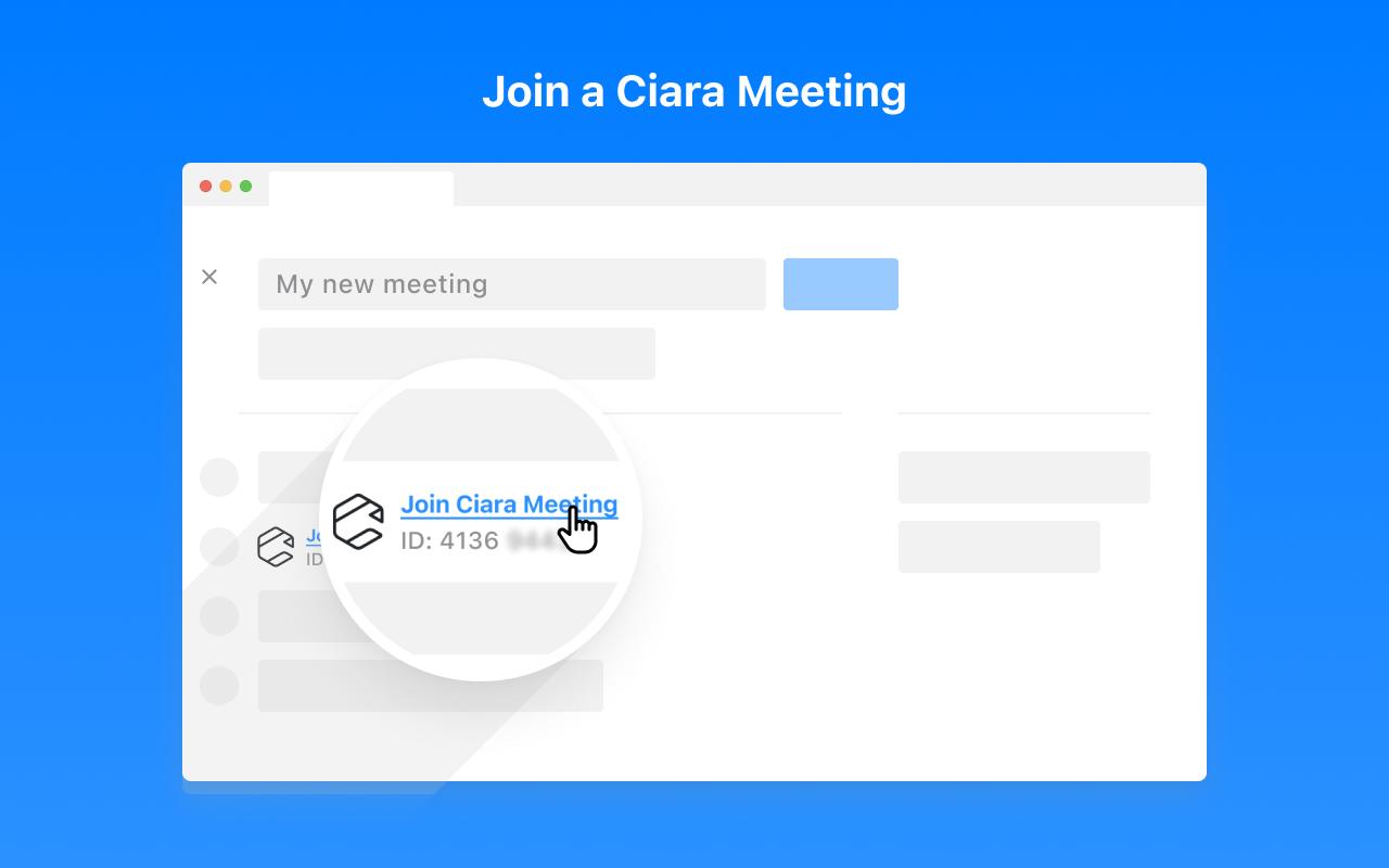 Use our Google Calendar™ integration to seamlessly schedule and start your Ciara meetings from your Google Calendar™. Add Ciara meeting links to your meeting invites and let attendees join with just one click.