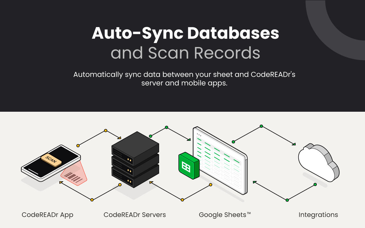 The CodeREADr Connector add-on is designed to automate the transfer of data between Google Sheets™ and the CodeREADr barcode scanning app to facilitate mobile data collection and validation. You will need a CodeREADr account to use the add-on. It can be a free account for testing (limited to 50 scans) or a paid account starting at $14.99/month with the ability to downgrade as needed (no commitments). What does the connector add-on do? 1. It automates the formatting and uploading of data from a sheet to a CodeREADr database in the cloud. That data is used to check the validity of the scanned value and present the attributes of that value to the CodeREADr mobile app user. 2. It automates the downloading of scan records to a sheet. The scan records are created with a scanning device (smartphone, tablet, mobile computer, etc.) running the CodeREADr mobile app. 3. It enables you to create simple workflows (aka “Services”) for recording scans and validating scans against a database. 4. Creates a single, master sheet with a Scans tab and optional Database tab. . 4. Allows you (or a Sheets™ consultant) to transform scan records into custom reports and custom views. For advanced workflows, you need to use CodeREADr’s no-code/low-code website to configure the mobile app for your specific requirements. Once configured, typical applications include: - Ticket scanning, validation, and duplicate checking - Attendance tracking and ID scanning - Asset scanning for tracking assets - Inventory audits and cycle counts - Track security patrol actions by location - Track maintenance team actions by location - Facility inspections - Verify parking permits - Track assembly and manufacturing processes - Lead retrieval at conferences CodeREADr workflow features - Validate scans online or offline with auto sync - Configure once, deploy globally with app usernames - SSO supported - White label option - Secure, end-to-end encryption - Customize data capture and responses - Alter scan values - Alter scan responses - Custom response labels, content, and colors - Webify (HTML) services and responses - Customize responses based on app user, scan value, etc. - Brand the mobile app - White label option - Secure, end-to-end encryption Sophisticated scanning options - Scan all 48 popular barcode types (PDF-417, QR, Code 128/39, etc.) - Rear camera or front camera - Flash for low ambients - Audio alerts (valid, invalid) - Auto-Next Scan” for fast repetitive scanning - OCR (Optical Character Recognition) and RFID/NFC reading - Zoom Slider (enlarge to capture) Advanced scanning modes - Batch (scan 200 barcodes in a single camera view in seconds) - Framing (capture in frame) - Selecting (capture then select) - Targeting (touch to capture) - Fusion (combine modes) - Trigger (capture only with tap) - Kiosk mode for unattended scanning Smart-Scan technology - Specify barcode type(s), prefix, suffix, length, etc. - Create filter rules - Create filter sets - Create export templates to match how data is consumed App user prompts - Text / Voice-to-text form fields - Dropdown menus, Multiple choice - Photos - Signatures - Multiple barcode scans in a single record - Select question order and filters - Session questions(auto-submit with every scan) - Questions asked pre-submit or post-submit - Show questions only if a valid or invalid response - Custom questions (low code) - HTML (collect answers from a webpage offline) - URL (collect answers from a webpage online) - On-The-Fly Questions (only show questions as needed)