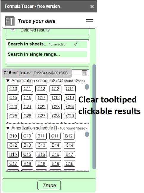 - Trace results per requested sheet
