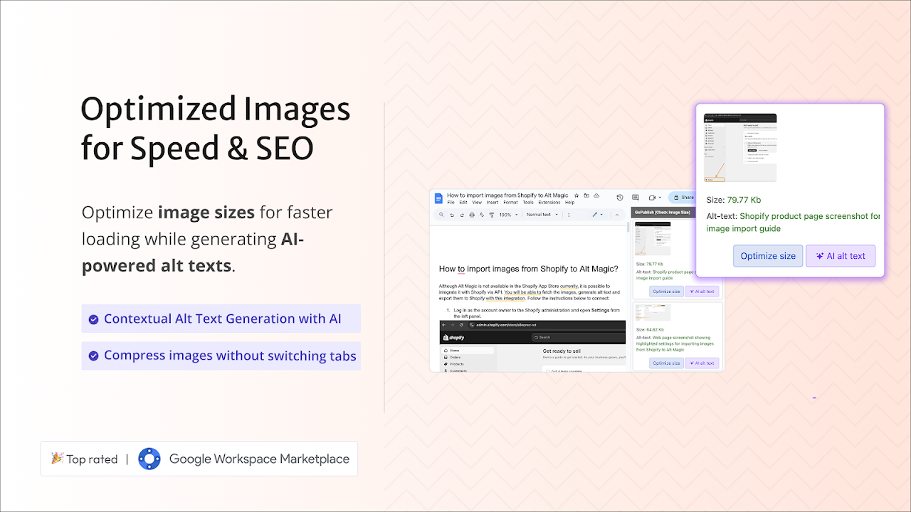 ✅ Image SEO: One-click image compression and alt text generation with AI. Directly inside your Google Docs™