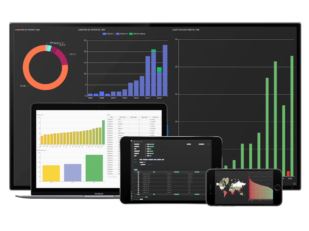Create and share responsive dashboards that adapt to the device size and displays the right amount of information for devices ranging from smartphones, tablets up to laptops, PCs, and TVs.