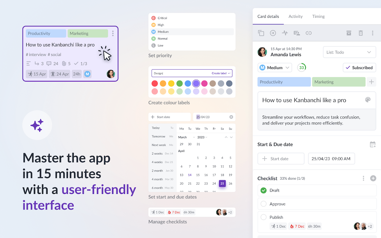 Kanbanchi is a powerful Google project management tool that seamlessly integrates with Google Workspace™, including Google Drive™, Gmail™, Calendar™, Forms™, and more. Our Google task management solution features an intuitive Kanban board, Gantt Chart, Time Tracker, and more - designed specifically for Google users. The Google Kanban board visualizes workflows for your tasks and activities, letting teams collaborate in real-time and manage projects visually within the Google environment! As the only project management tool natively integrated with Google Workspace™, Kanbanchi offers unmatched convenience. Sign up with your Google account and work with project boards stored directly in your Google Drive™, sharing them effortlessly with colleagues. Our Google task management tool provides flexible access permissions, Google Calendar™, Gmail™, and Forms integrations, and a familiar interface with no learning curve - simply deploy Kanbanchi to all your organization's users from the Google Admin Console™. Security is paramount with our Google project management solution. Your files remain on YOUR Google Drive™ with authentication managed by Google - we never store your passwords. Boards are encrypted by default in Google Cloud™. Additionally, Kanbanchi's Google task management system is SOC2 Type II, ISO-27001, and CASA certified, GDPR and PCI DSS compliant, and follows HIPAA rules. We ask for permission to access certain parts of your Google Drive™ because Kanbanchi doesn’t store data on its side. All your files and sensitive information will be stored on your Google Drive. However, the app should be able to operate this part of your Google Drive™. Core functionality of our Google Workspace™ Kanban solution: – Create and share unlimited project boards and cards in Google Workspace™ – Share internally and externally according to your company's Google policies – Receive notifications about board updates – Add events to Google Calendar™ – Attach files from Google Drive™ and Shared Drives – Communicate with colleagues about tasks – Organize cards with text and color tags – Sort and filter cards as needed – Create boards as files in Google Drive™ (Shared Drives for Enterprise users) – Import Your Trello Boards or import data from CSV Advanced functionality in our Google project management tool: — Gantt Chart for Google Project Management Convert your Kanbanchi board to a Gantt Chart with one click. See how all your cards relate in time and plan project schedules visually. — Time Tracker for Google Task Management Track time directly in Kanbanchi—choose a card, start the timer, and monitor your team's progress in the Timing tab, where all user timing data is recorded. — Reports for Google Project Tracking Monitor team progress to adjust the workflow quickly. Check user performance to manage resources effectively within your Google task management system. — Task Prioritization in Google Workspace™ Simplify work by prioritizing each task and sorting accordingly. Automate this process for better control in your Google project management workflow. — Corporate Branding for Google Workspace™ Projects Customize Kanbanchi's look by adding your company's logo and background images. — Export to Google Sheets™ Export all board data, including assignments, dates, checklists, and comments, directly to Google Spreadsheets. — Card Creation from Gmail™ Create new cards by emailing your board's unique address or installing our Gmail add-on to send information to any accessible board. — Backups for Google Project Security Back up important Kanbanchi boards for easy recovery, ensuring your project data is always safe. — List View for Google Task Organization View all cards in a scrollable list, quickly navigate from top to bottom, and filter as needed. — Subcards for Detailed Google Task Management Organize complex tasks by breaking them into subcards that can be assigned and tracked separately. — Templates for Google Project Efficiency Speed up workflows with our template gallery or create custom board templates. Create card templates to streamline repetitive tasks. — Shared Drives Integration Attach files from Shared Drives to cards; enterprise users can create boards directly in their Shared Drives. — Swimlanes for Project Organization Easily manage multiple projects on a single board by using swimlanes. This feature lets you visually separate and track tasks from different projects in one place, giving you a clear overview of all your work within your Google Workspace™ Kanban board. Latest release: - Made a Chrome Extension to give you instant access to Kanbanchi from anywhere on the Web; - Fixed appearance bugs; - Smoothed user login experience; - Tuned board settings. Also, list view and board settings both got a new, fancy look! *Gmail™ is a trademark of Google LLC *Google Workspace™ is a trademark of Google LLC *Google Drive™ is a trademark of Google LLC *Google Admin Console™ is a trademark of Google LLC *Google Cloud™ is a trademark of Google LLC *Google Calendar™ is a trademark of Google LLC *Google Sheets™ is a trademark of Google LLC Install Kanbanchi, the native Google Kanban board and project management tool for Google Workspace™, and start your free trial now!