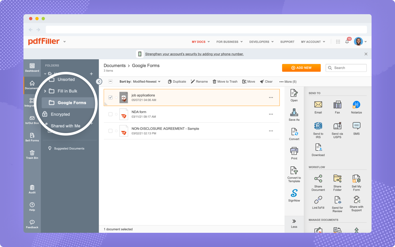 Save time creating and collecting completed documents by connecting Google form responses to fillable fields in PDF templates.