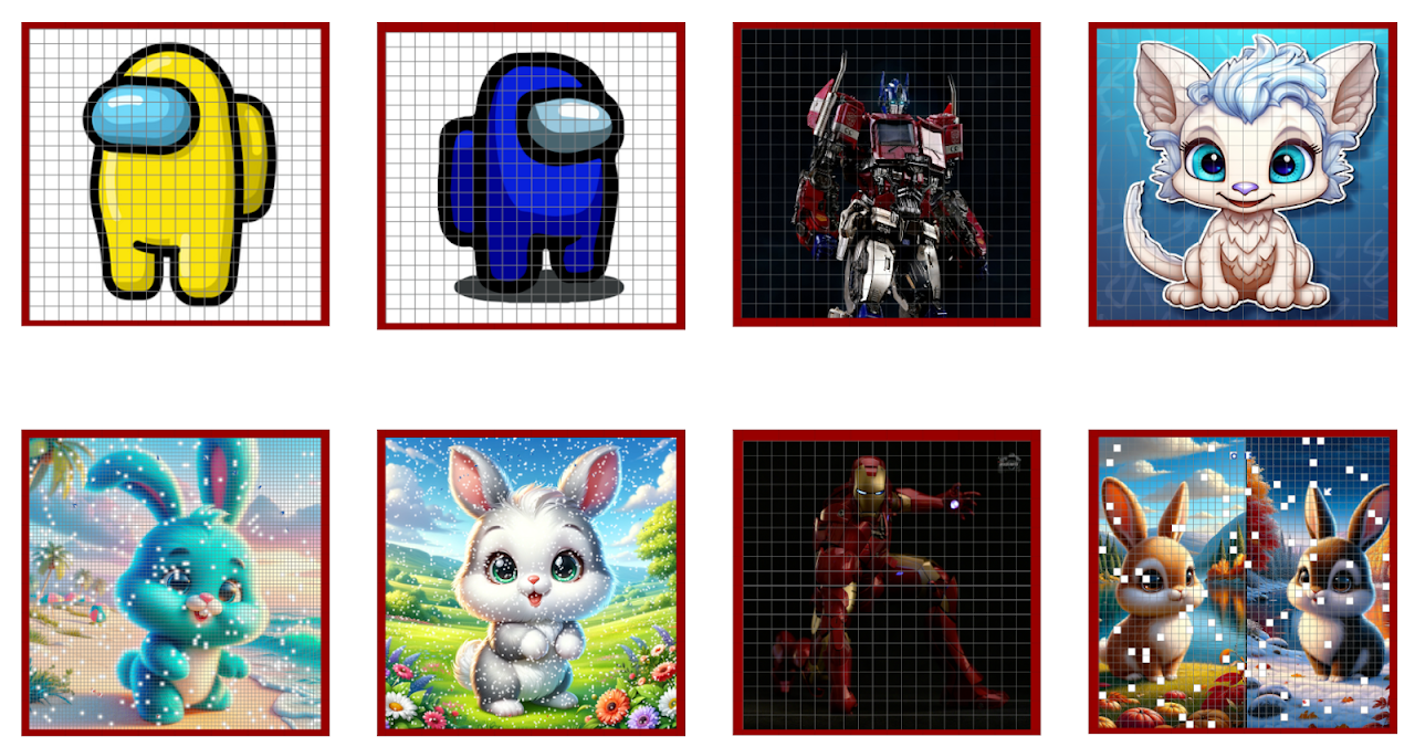 Image Integration: Provide any image, and our add-on will cleverly divide it into smaller squares, turning it into a pixel art puzzle.