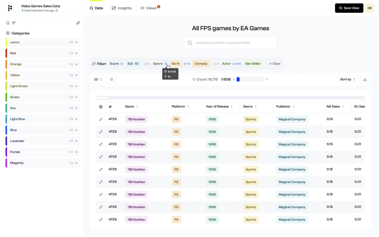 Instantly turn your spreadsheet into an interactive web application where you can search, visualize, and find insights in your data. No technical setup necessary.