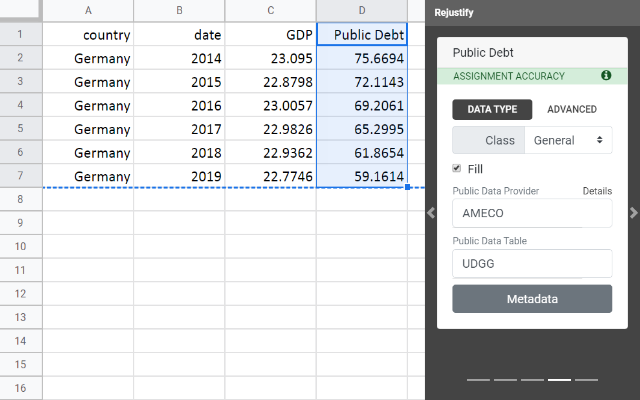 I love it, it is the best tool to find and arrange statistical data into a dataset. This service is a great boost of productivity for data and finance analysts. Being part of the team behind this app, I would like to thank all the rejustify's team members for their commitment.