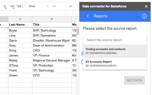 Import reports or custom data queries from Salesforce into Google Sheetsᵀᴹ, make changes to Salesforce directly from Google Sheetsᵀᴹ or convert Salesforce URLs to smart chips in Google Docsᵀᴹ.