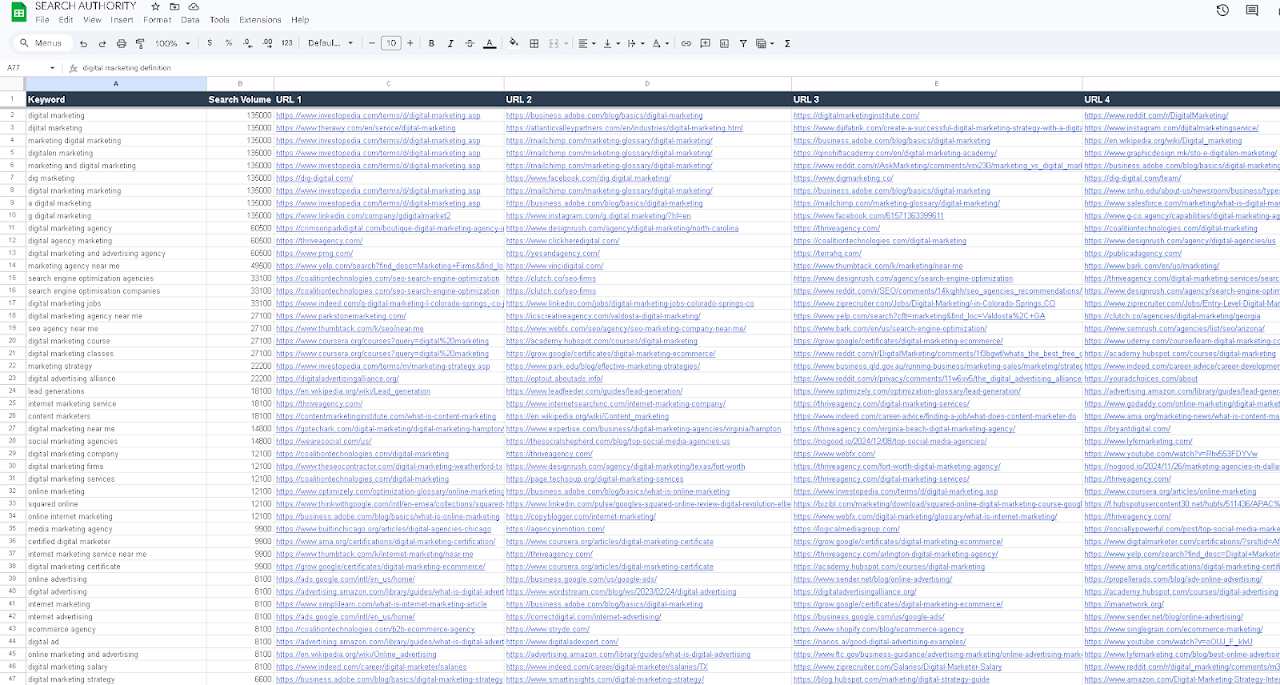 Search Authority transforms the way marketers, affiliate professionals, and SEO agencies do keyword research, right inside Google Sheets™. • What You Can Do with Search Authority → Keyword Research Powered by Google Autocomplete™ Expand your keyword lists instantly with real-time suggestions directly from Google. • Live Metrics from Google Ads™ → Fetch accurate search volume, CPC, bid ranges, and competition — no scraping, no guesswork. •SERP Analysis at Scale → Extract the top 10 URLs for thousands of keywords with a single click. • Smart Keyword Clustering → Group related keywords using real SERP overlap, allowing better content planning and ad targeting. • Geo & Language Targeting → Customize your research by country and language for local SEO or international campaigns. • Privacy-First Design → Your keywords and results are never stored. Everything runs securely within your own Google Sheets™. .......................................................................................................................................... • Free Plan Includes → Unlimited use of Google Autocomplete™ → Full access to keyword clustering (when manually inputting keyword lists) • Pro Plan Unlocks → API-powered keyword metrics: search volume, CPC, competition, bid range → SERP analysis: top 10 URLs → Real-time, large-scale data handling → Ideal for marketers, agencies, and affiliate professionals who want deep insights at scale .......................................................................................................................................... Flexible payment options: Pay-As-You-Go or Monthly. Credits stay valid as long as you keep topping up every 30 days. • Why Search Authority? No more CSVs or switching tabs between SEO tools 100% Google-sourced data — not scraped or estimated Built for non-technical users — install, click, analyze Works where your data already lives: Google Sheets™ Google Sheets™, Google Ads™, and Google Autocomplete™ are trademarks of Google LLC.