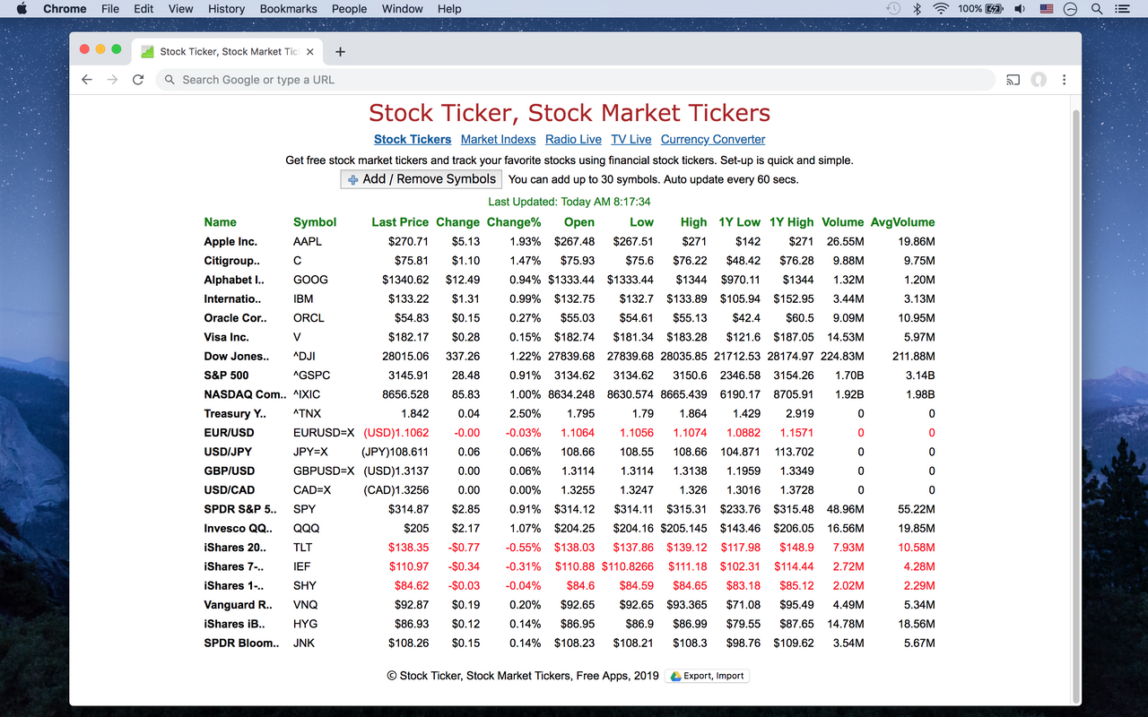 Get US stock market tickers and track your favorite stocks using financial stock tickers. Set-up is quick and simple.