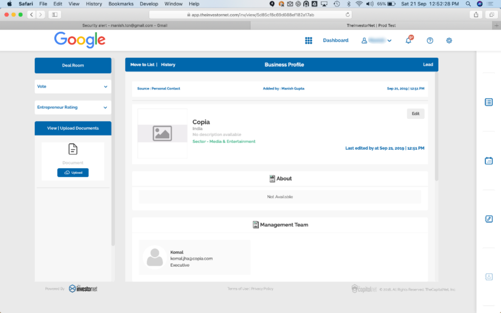 TheInvestorNet for Gmail is the quickest way to add deals directly from the Gmail account to TheInvestorNet application.