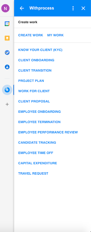 Standardize your team's practical processes, automate recurring checklists and increase productivity on a large scale. 1. Sign up for free Register for a free, 14 trial. No credit card required. Includes our 5-star full support. 2. Choose process templates or create new ones Re-use our pre-built process templates for common tasks in Finance, HR, Client Management and more - or create your own. 3. Run processes as collaborative work Track activities progress in work history, track time per work item. Reduce time, cost and potential mistakes.