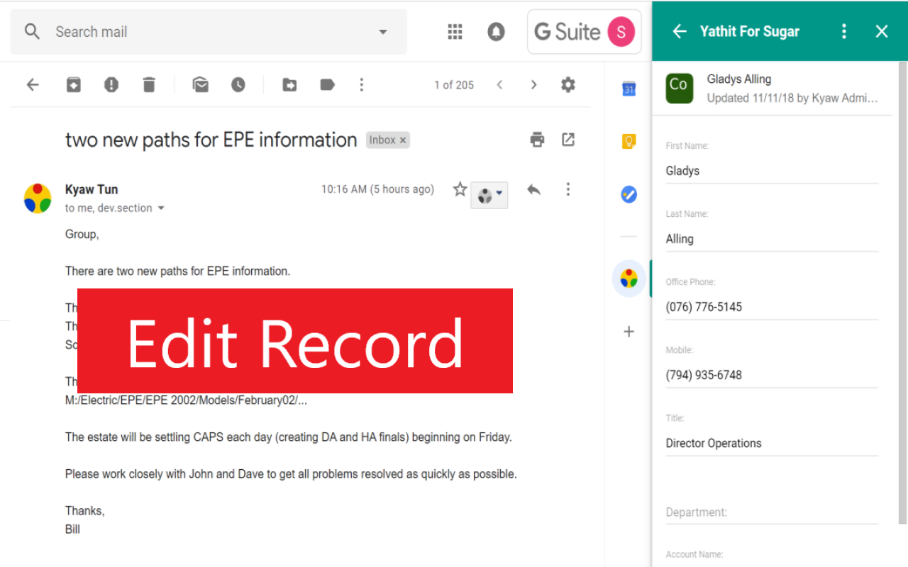 Yathit integrates Gmail with SugarCRM/SuiteCRM for quick view of contact information from your CRM, edit or create records and save email with attachments to your CRM in one click.